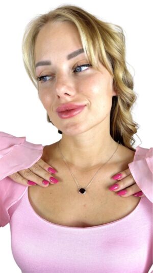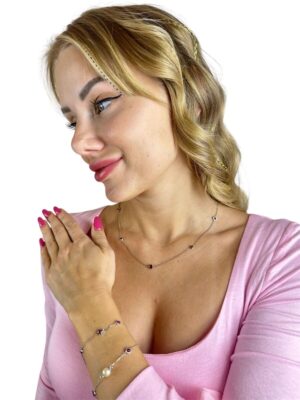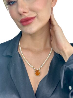 İnci, Pırlanta ve Çiçek Tasarım Akik Taş Beyaz Altın Kolye