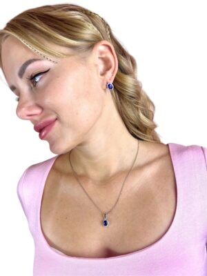 Pırlanta Çerçeveli Safir Taş Altın Set