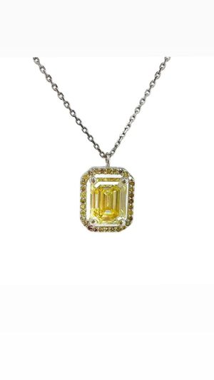 Baget Kesim Moissanite Taş Sarı Pırlanta Çerçeveli Altın Kolye