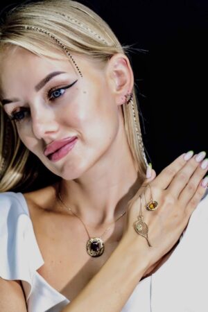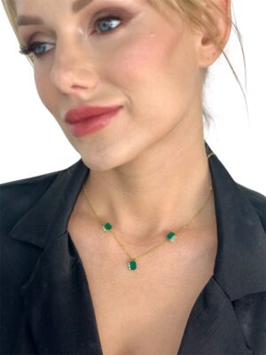 3’lü Akik Taş Pırlanta Süslemeli Altın Kolye