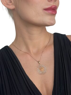 Güneş Çiçeği Tasarım Pırlanta Süslemeli Rose Gold Altın Kolye