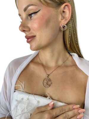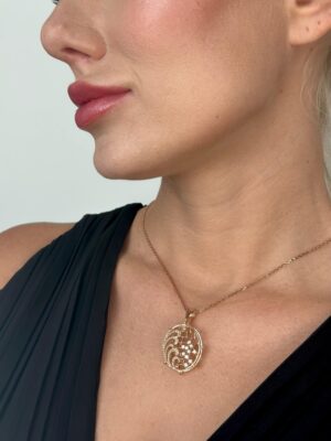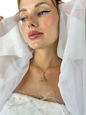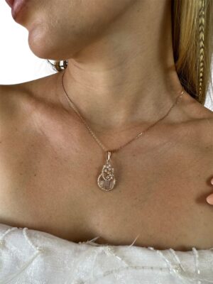 3 Boyutlu Pırlanta Süslemeli Rose Gold Tasarım Kolye