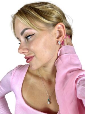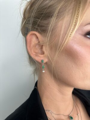 İnci Tasarım Zümrüt Taş Altın Küpe