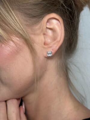 Kare Kesim Moissanite Taş Altın Küpe