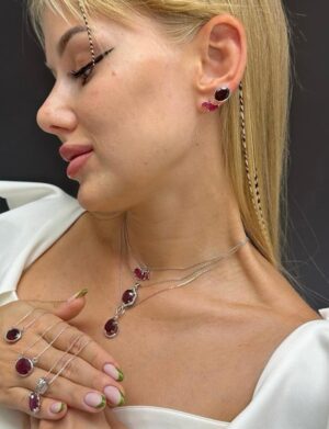 Yakut Taşlı Altın Küpe