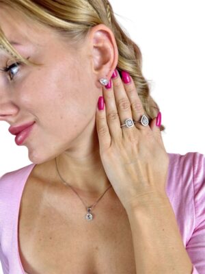 Pırlanta Çerçeveli Moıssanıte Taş Küpe