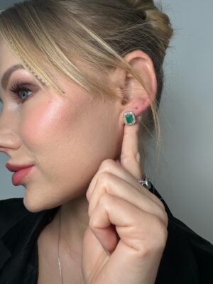 Pırlanta Çerçeveli Zümrüt Taş Küpe