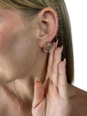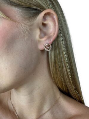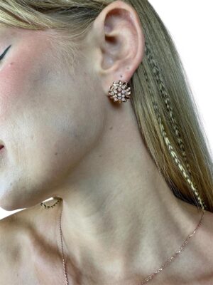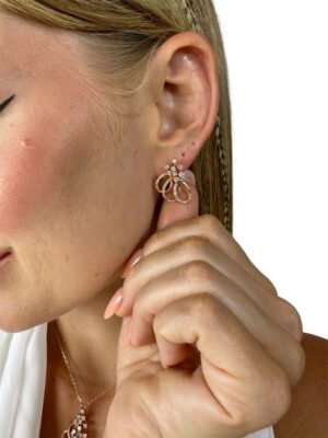 Pırlanta Süslemeli Rose Gold Çiçek Tasarım Altın Küpe