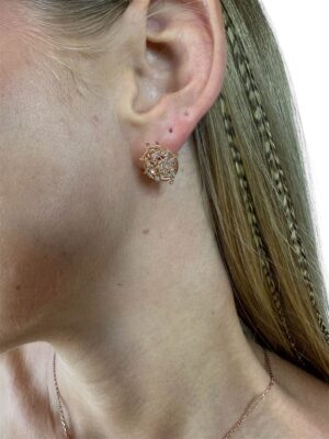 Rose Gold Tasarım Pırlanta Süslemeli Altın Küpe