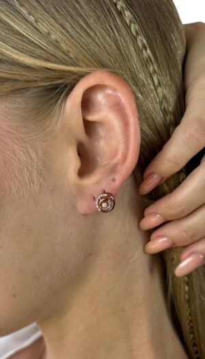 Pırlanta Süslemeli Rose Gold Tasarım Altın Küpe