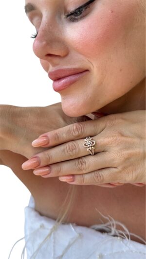 Pırlanta Süslemeli Rose Gold Tasarım Altın Yüzük